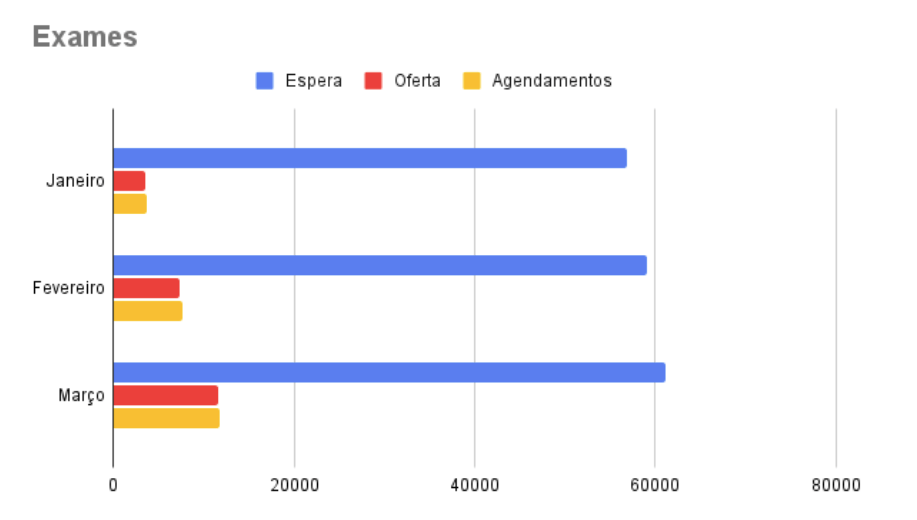 O exame com mais procura é o ultrassom transvaginal que, desde janeiro de 2024, acumula mais de 12 mil pedidos em aguardo para agendamento, mas até o momento não possui oferta.