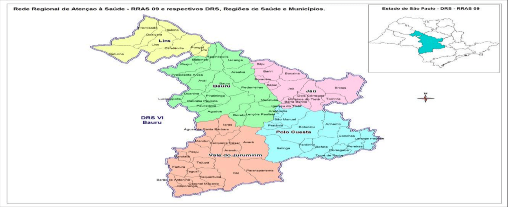O município de Bauru integra o Departamento Regional de Saúde (DRS VI) de Bauru com 68 municípios situados nas Regiões de Saúde do Vale do Jurumirim, Bauru, Pólo Cuesta, Jaú e Lins. Abrange uma população total de 1.624.623 habitantes.