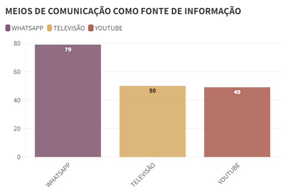 A pesquisa apontou que quanto mais nova a pessoa, mais ele recorre às redes sociais, e quanto mais velha, à televisão, e entre esses dois meios, elas têm em comum o Whatsapp.