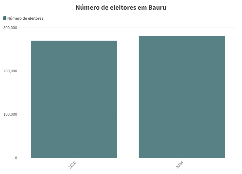 Na cidade de Bauru, são esperados 281.160 eleitores, segundo o senso do TSE, 4% a mais do que na última eleição municipal, em 2020.