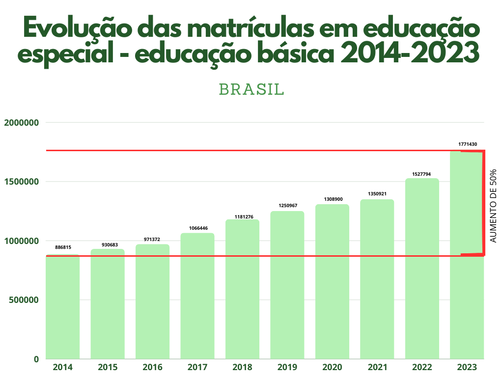 Comparativo da evolução das matrículas em educação especial – Educação Básica 2014 – 2023
