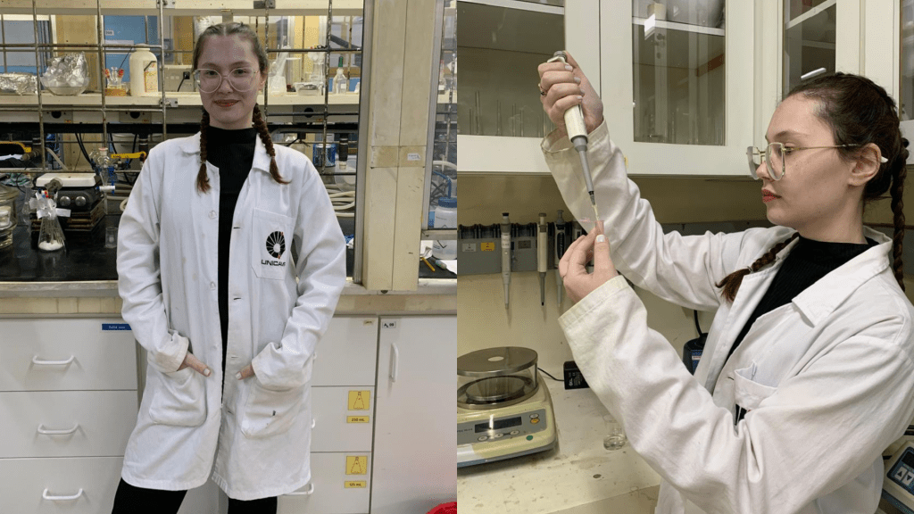 Após se graduar em química, Giulia continuou pela UNESP para seu mestrado em 2022 e, atualmente, faz doutorado pela Universidade Estadual de Campinas (UNICAMP). Em entrevista à Trilhos, ela agradece a oportunidade que o cursinho a ofereceu de conhecer o ambiente acadêmico e universitário com os professores do Principia, que a fez descobrir o amor pela pesquisa.