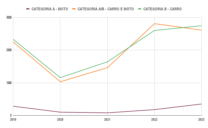 Ou seja, apesar das quedas durante os anos de pandemia (de 2020 até 2022), a alta procura pela habilitação é evidente e um fator de mudança nos números de ocorrências de trânsito. Isso porque quanto mais motoristas estiverem circulando na cidade, a chance de acidentes acontecerem também pode aumentar.