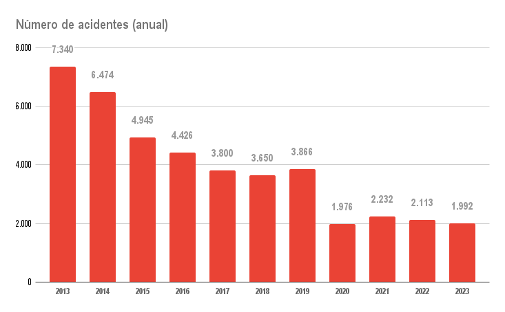 A realidade é que o número de ocorrências de trânsito em Bauru caiu anualmente. Em 2013, a cidade totalizou 7.340 acidentes de trânsito, enquanto que em 2023, uma década depois, o número foi de 1.992 casos (dados da EMDURB Bauru).