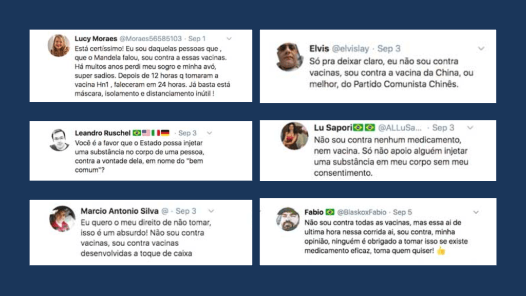- No momento da aplicação dos imunizantes: narrativas que sugeriam que as vacinas pudessem causar outros tipos de doenças, como tuberculose ou outras complicações.