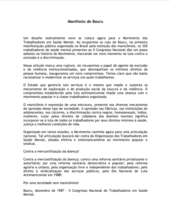 Luta antimanicomial e a Carta de Bauru