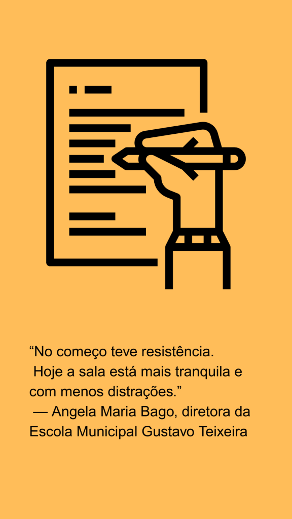 No município de São Pedro (SP), as escolas têm passado por mudanças que alteram a rotina dos professores, estudantes e famílias, com a adoção de um ambiente menos conectado dentro das unidades de ensino. Na Escola Estadual Gustavo Teixeira, a diretora Angela Maria Bago relata que a implementação foi feita de forma gradual, com apoio da coordenação pedagógica e diálogo com a comunidade escolar. “No começo houve alguma resistência. Aluno tentando usar escondido, pais reclamando. Mas hoje já vemos um ambiente mais tranquilo e com menos distrações em sala”, afirma.