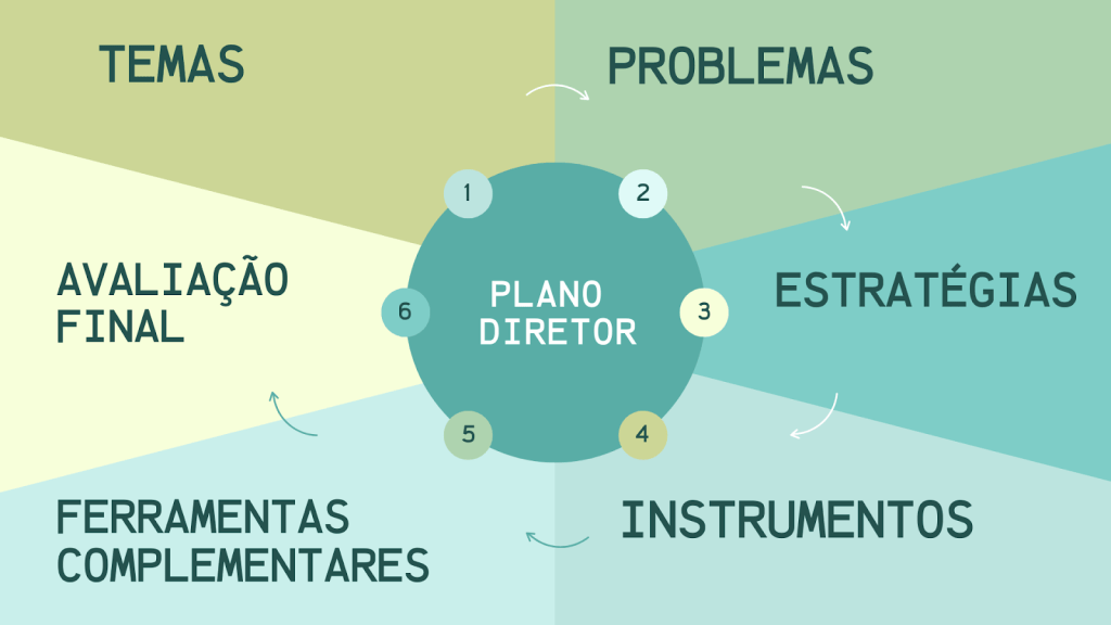 O Plano Diretor é o conjunto de planejamento, objetivos e princípios urbanisticos que visa garantir o desenvolvimento de uma cidade, elaborado pelo poder Executivo e Legislativo, com apoio de equipes técnicas multidisciplinares do município. Para sua elaboração, são necessárias três etapas fundamentais.